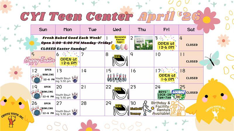 The Teen Center is open to youth from the 6th through 12th Grades. The Teen Center is in operation after school, Monday through Friday. The Center offers an attractive drop-in facility for teenagers providing many recreational activities, including bowling, pool, ping-pong, foosball and other table and video games.